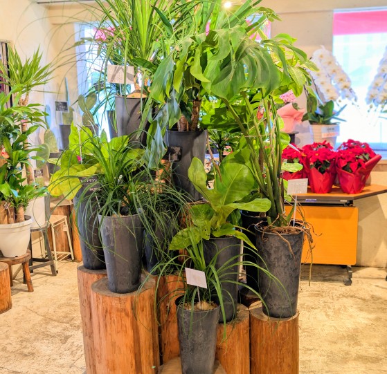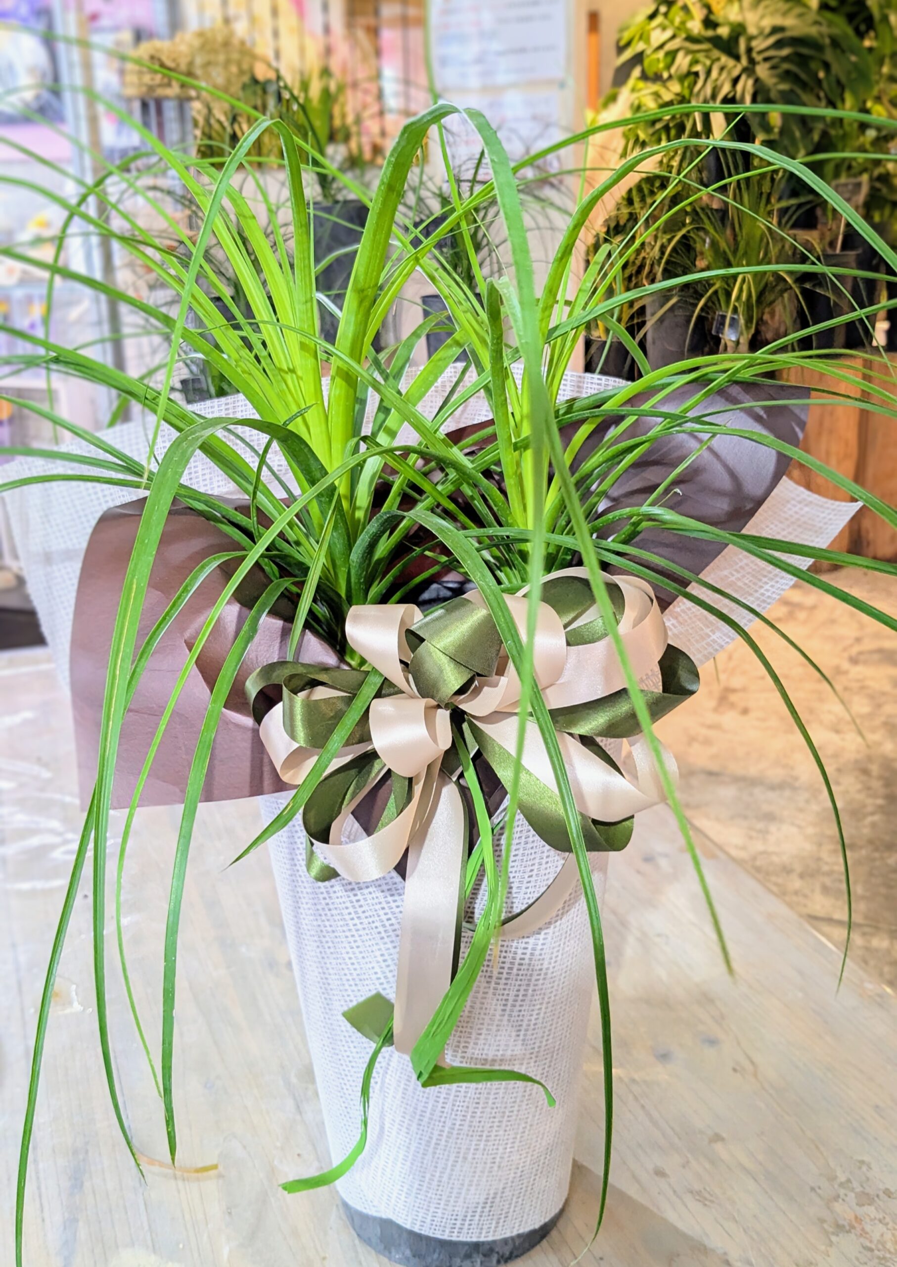 また、店舗の入り口やロビーなどに適した大きめサイズの観葉植物も、車に積んでお届けできる範囲で対応可能です。納品時には簡易ラッピングや立札(名札)をお付けすることもできますので、法人様へのギフトにも安心してご利用いただけます。